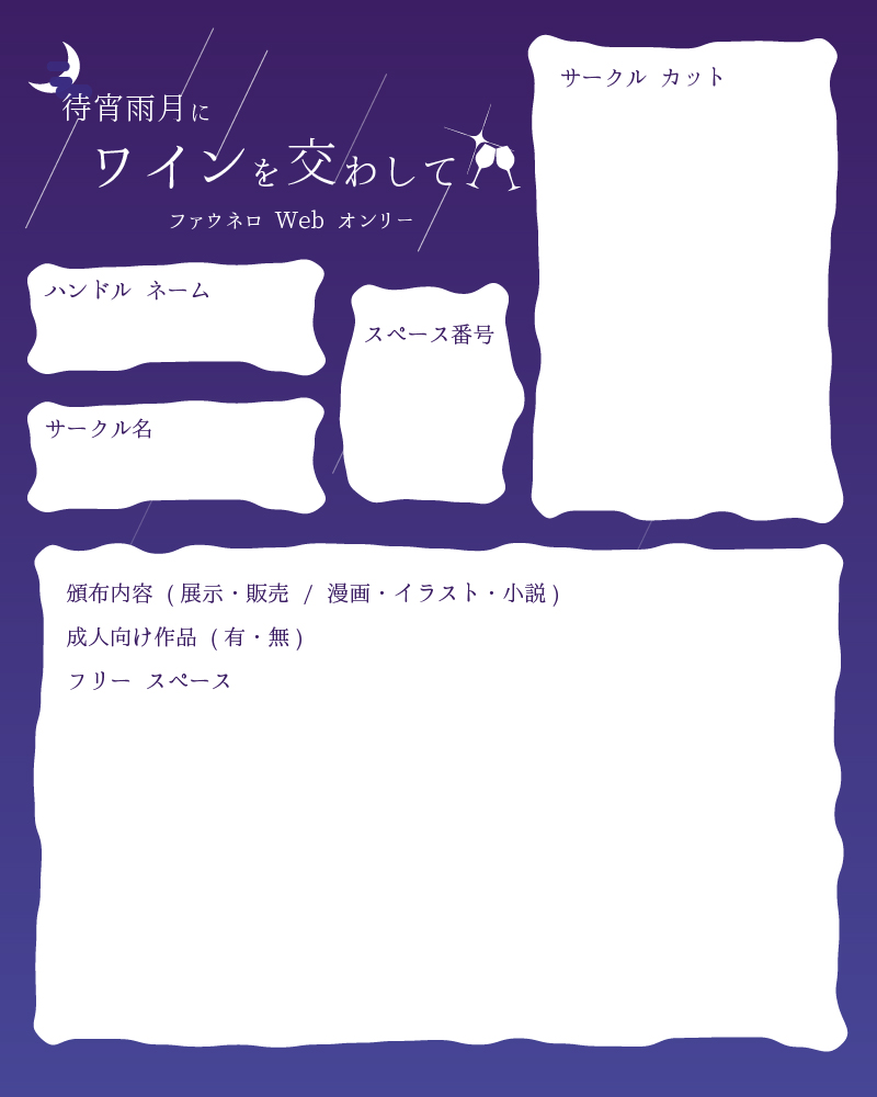・「頒布物の主な内容」は申込に必要な情報ではないので、空欄のままでも構いません。(サークル情報のページには載ります)